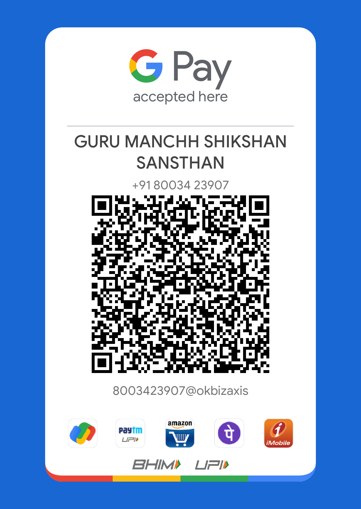 UPI ID : 8003423907@OKBIZAXIS